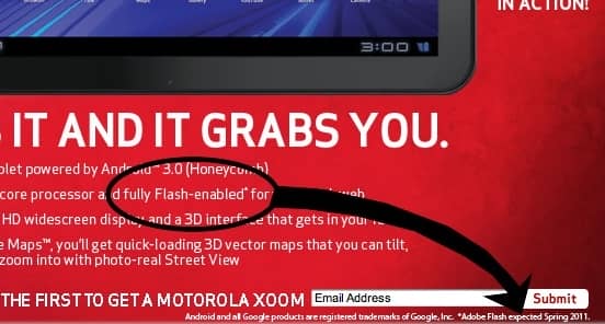 According to Verizon, the Xoom’s Flash support is “expected Spring 2011”, and not when the tablet goes on sale on this coming Thursday (24 February.)