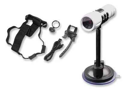 As well as the camera, you will also be in reciept of various bits and bobs that look a bit S&M, but in reality, help you to attach your camera to either your person, or extreme sports kit. One attachment will clasp your camera to the handlebars of a bike, one to attach the camera to a helmet via various straps that look fairly unfathomable. On top of this, you will get a suction cup and stick, allowing you to attach the camera to any flat, shiny surface, think car windscreen, inside or out! You also get a small viewfinder that attaches to the back of your camera, and allows you to peer through, and judge roughly, what your filming. I have to say, the viewfinder is tacky. Christmas cracker tacky. I could see it flying off when you go over a bump on your bike or any time a strong wind blew. And as your camera is going to be attached to your head, why have it?
