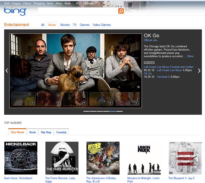 Microsoft’s “decision engine”, is looking to take on iTunes with a some clever intergregration with their Zune Marketplace, from today searches of music, lyrics, games, TV shows, and movies will all get a special place in the search engine.