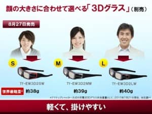 The new active shutter 3D glasses which will be released alongside the televisions are however likely to become a worldwide product. Rather than the traditional 'one size fits all' glasses these are available in different sizes to cater for the whole family. Another change is the traditional 'watch battery' used to power the glasses has been replaced by a sealed in battery rechargeable by USB. Impressively, two hours charging via USB should equal 30 hours of watching.