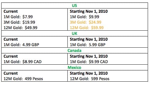 A single month will go from $7.99 to $9.99, three months will go from $19.99 to $24.99, and the yearly fee will now be $59.99, up from $49.99. The blow has been softened somewhat with a “lock in” promotion for a discounted $40 one-year Gold subscription which will start on the day that the increases come into affect.
