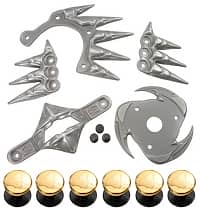 Armouron are basically plastic armour sets of body plate, helmet and shield. The twist is that each is fully customisable into your own unique costume through additional clip on Snapperons. These include wings, flames, spikes and visors and mean that you’re never going to have to worry that your best mate has turned up to the battle looking exactly the same as you (unless you’re going for the twin look anyway). There’re also weapons such as the Long Sword too.
