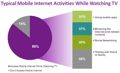 Bet you didn't see this one coming! A study conducted by Nielsen and Yahoo has drawn some startling conclusions. One of them isthe fact that people engage in other activities while watching TV. So, we are not that much of couch potato as we thought, eh! As many as 86 percent of the mobile internet users surf net during their TV watching time. The good news is that almost 56 percent of the users utilize the time to interact with their family and friends via texting.