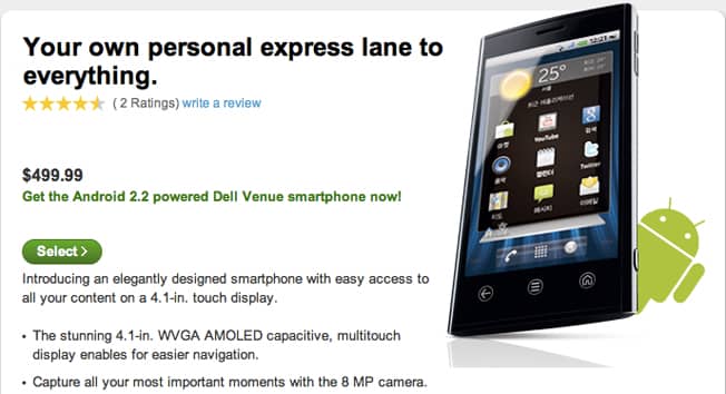 Venue Pro sports 4.1 inch AMOLED touchscreen display and has a 1GHz processor under its hood. Its on-board storage is capped at 1GB but you can expand it up to 33GB using a MicroSD card. Venue Pro comes with 512MB of RAM and a 1400 mAH battery. Dell has layered Android Froyo with its proprietary Stage software. It also has an 8MP autofocus camera which is capable of video and audio recording. The phone is available with T-Mobile 3G and AT&T. you can order your phone now and the shipping is expected to start on February 18th.