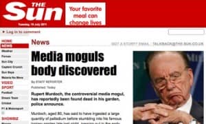 The clever chaps at LulzSec managed to hack the Sun online and re-directed users to a fake front-page where a spoof story was made up that Rupert Murdoch body was found dead at his London home.