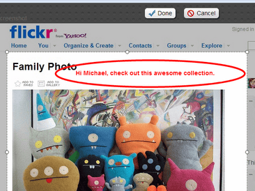 Awesome Screenshot is an extension that does what it says. You can capture the whole page or any portion, annotate it with rectangles, circles, arrows, lines and text, even blur the sensitive info (which you should be doing), and then last but not least the very awesome feature of one-click upload to share.