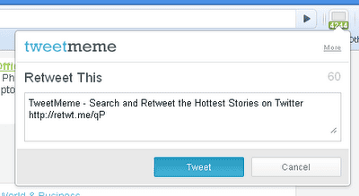 Well, if you download the Tweetmeme Chrome extension you can take a mini tweetmeme re-tweet button with you wherever you travel around the big World Wide Web.