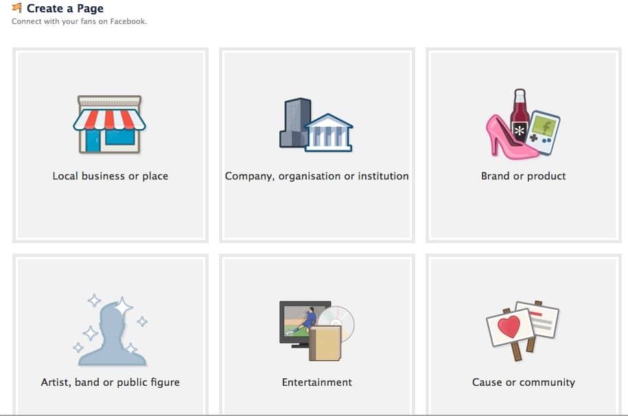 Finding the link to create a Facebook Page can be a bit tricky, as Facebook has done a great job at not placing it anywhere prominent on its site. To create a page, wander over to: