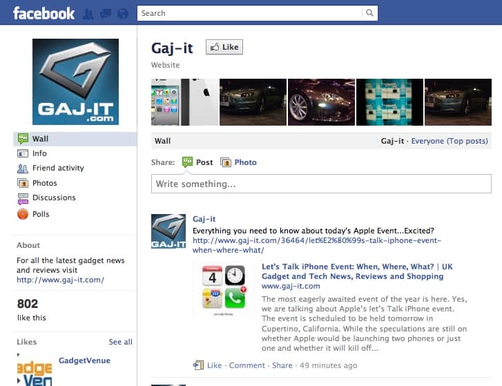 You can personalise your page to your business by uploading photos, videos, applications and shout out messages to all of your fans.