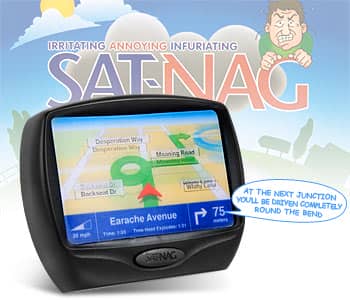 The Sat Nag features no GPS technology and no direction-giving capabilities, though it does have a holographic screen, featuring roads such as Backseat Drive, Whiny Lane and Earache Avenue. No, unfortunately it won't find your nearest High Street- meaning that as good as it is, it will never replace your wife.