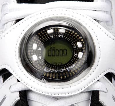 The sole of the right shoe is also equipped with a sensor to measure your speed and weight that you are putting down. This provides for accurate statistics relating to your performance and more analysis that your average personal trainer would provide (how many of them keep a speed camera in their bum bag?).
