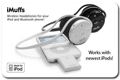 iMuffs mean that there is no chord between you and your beloved pod so no more snagging, untangling and best of all you aren't limed to only carrying your iPod in your hip pocket or around your waistline. You can hear near-CD quality sound up to 10m away, meaning that you can throw your iPod in your backpack or even leave it in your car and still listen to your music.
